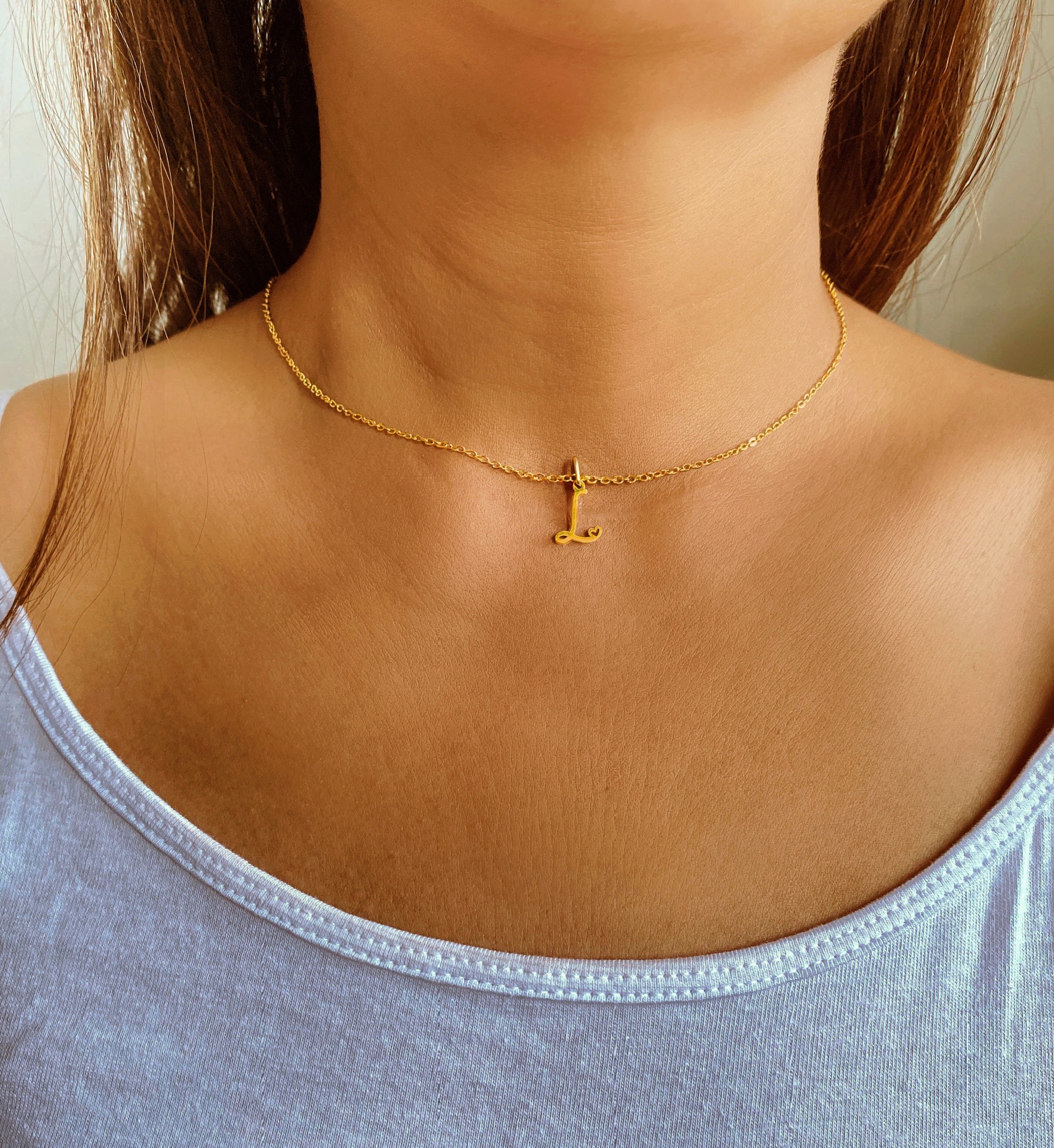 Custom Letter Necklaces with Tiny Heart